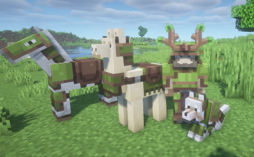 <figure><img src="https://548966760-files.gitbook.io/~/files/v0/b/gitbook-x-prod.appspot.com/o/spaces%2FTAoAxayP9PrBtX9UQ5wa%2Fuploads%2Fgit-blob-35753b3978265e132fe6816d97aee2da06e0c48f%2Fimage.png?alt=media" alt=""><figcaption><p>Forest Armor Sets Nexo comes with (Player, Wolf, Horse &#x26; Llama)</p></figcaption></figure>